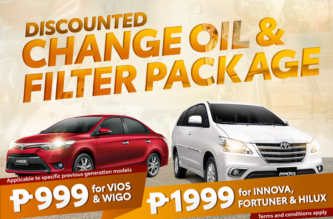 Get a discounted package for change oil and oil filter service for as low as P999.