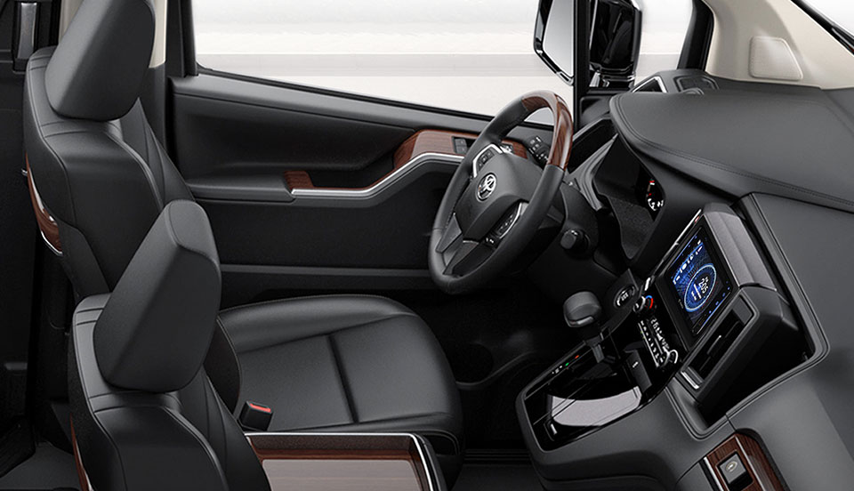 Uncompromising comfort, well-thought-out design, and comprehensive convenience find harmony in the Hiace Super Grandia